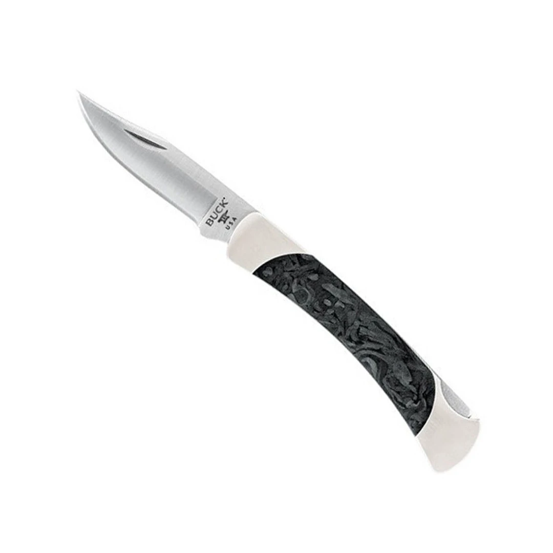 Buck The 55 Marble CF/Nickel Silver Lockback Knife is a timeless knife crafted from unique, natural materials. The clip point is made of CPM-S30V stainless steel which is a high end steel that offers toughness, corrosion resistance, and wear resistance. The handle is made of quality marble carbon fiber with satin nickel silver bolsters that add to the quality and the visual appeal of this knife. This beautiful knife is an excellent addition to anyone’s collection.