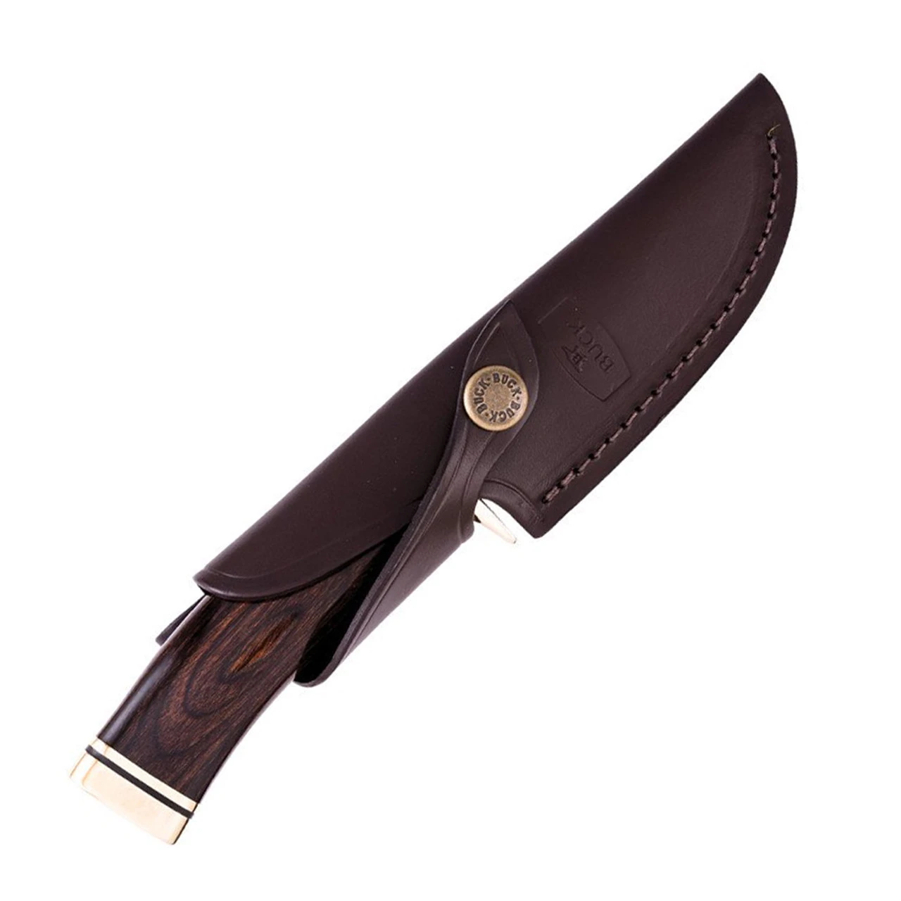 Buck Vanguard Fixed Blade (0192BRS-B) – 4.25″ 420HC Satin Drop Point Blade, Polished Brass Pommel/Guard with Brown Leather Sheath